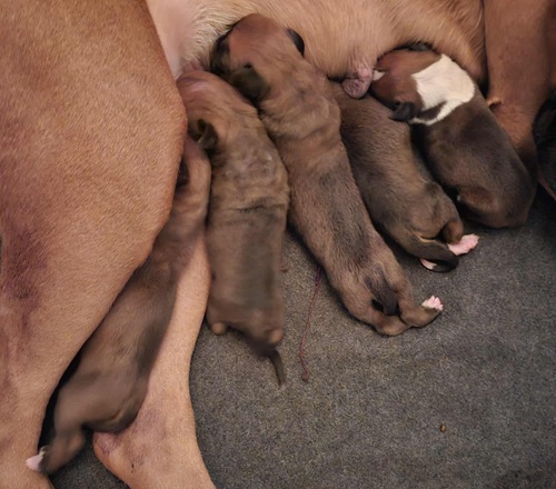 5 Fawn puppies 3 girls (1 flashy, 2 plain) 2 boys (1 flashy, 1 plain) born November 17,2025